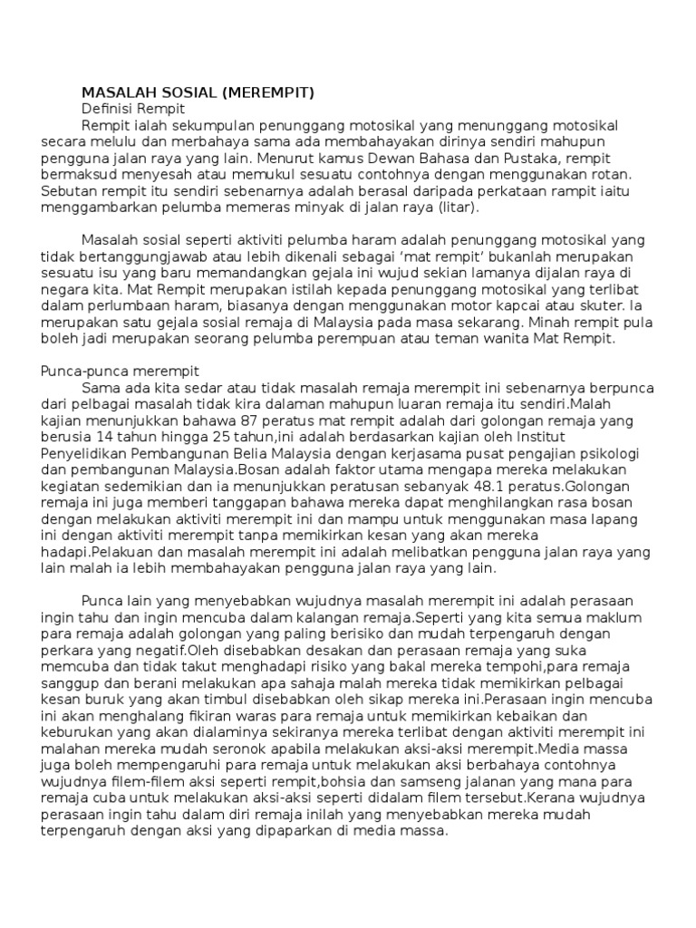 Cara Mengatasi Gejala Sosial Rempit Docx Document