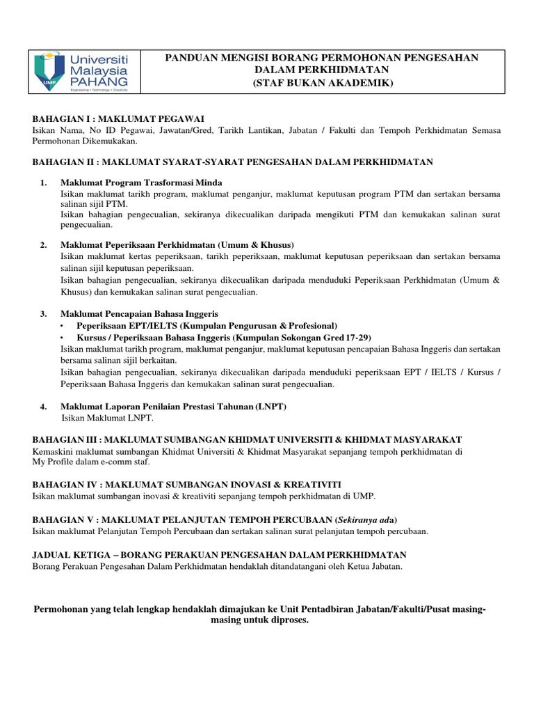 Panduan Mengisi Borang Permohonan Pengesahan Dalam Perkhidmatan Staf Bukan Akademik