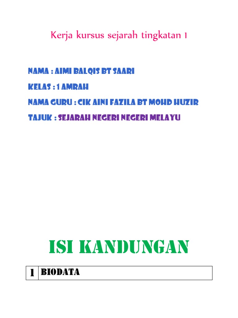 Sejarah Tingkatan 1 Format Kerja Kursus