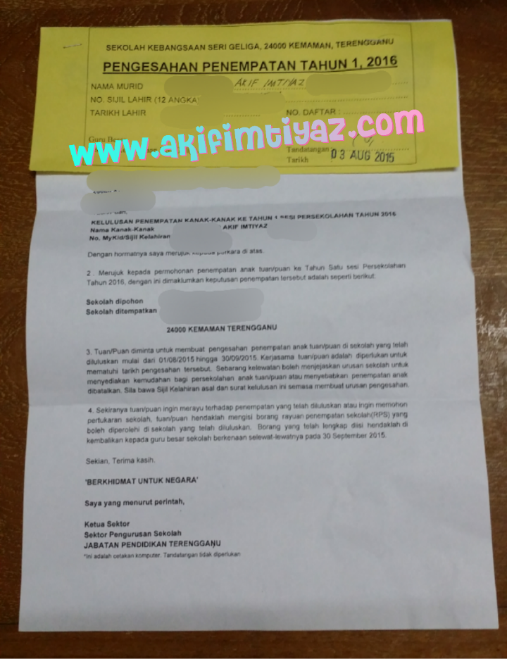 Surat Pengesahan Penempatan Tahun 1 2016 Akif Imtiyaz