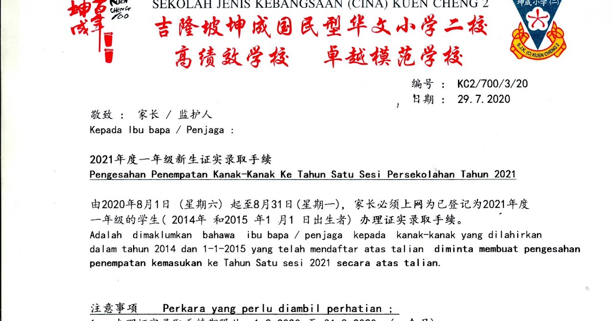 Pengesahan Pendaftaran Murid Tahun 1 2020 Sekolah Kebangsaan Tun Abdul Aziz Majid Facebook