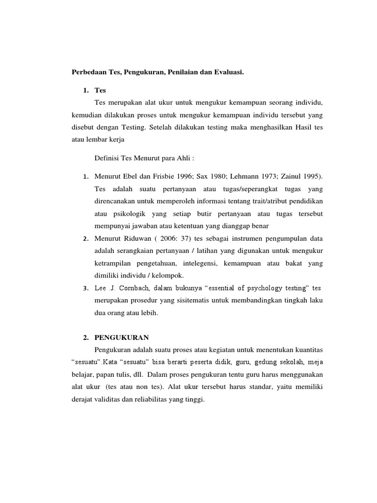 Pdf Definisi Tes Pengukuran Penilaian Dan Evaluasi Tes Rexy Auzia Putra Academia Edu
