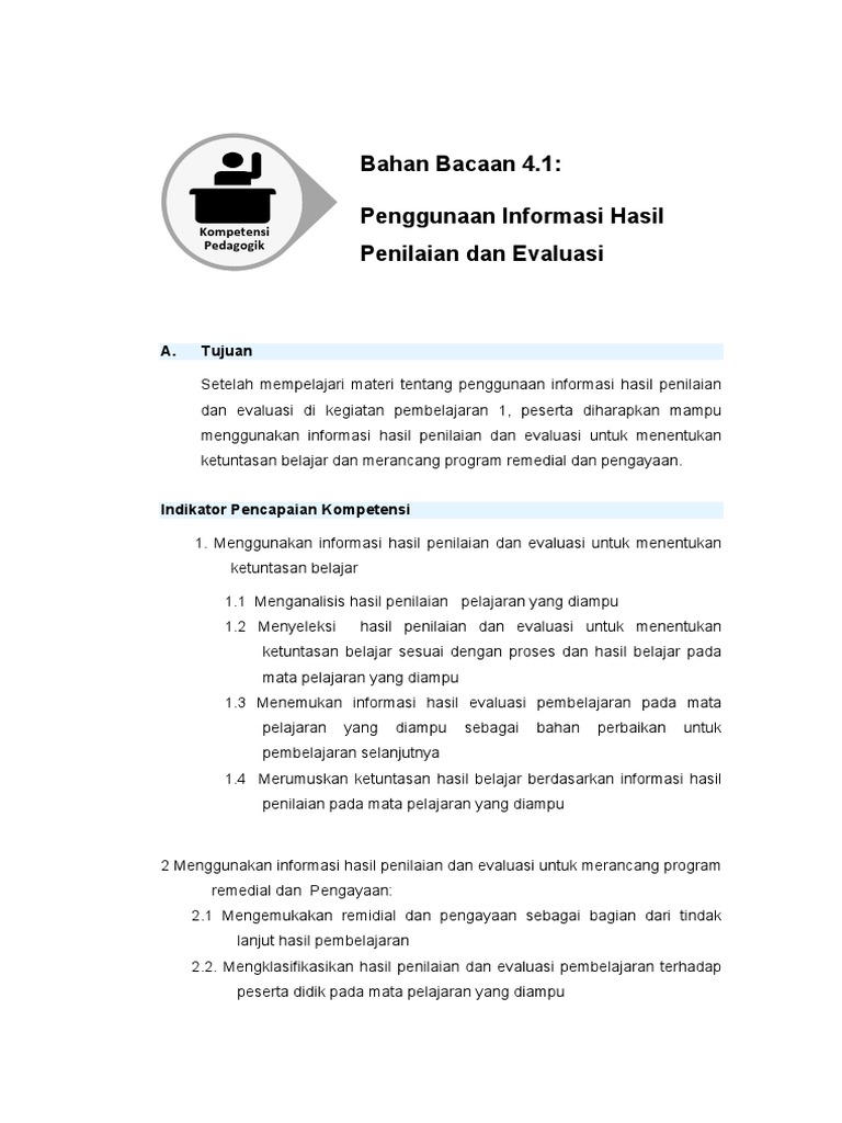 Bahan Bacaan 4 1 Penggunaan Informasi Hasil Penilaian Dan Evaluasi