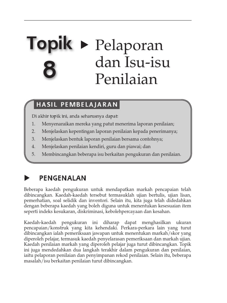 Topik 8 Pelaporan Dan Isu Isu Penilaian