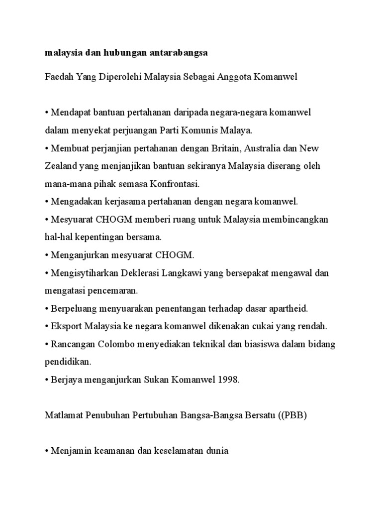 Sumbangan Malaysia Dalam Pbb Oic Komanwel Fakrul Nazneen