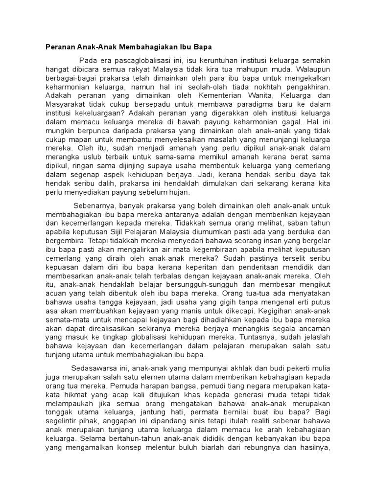 Peranan Anak Membahagiakan Ibu Bapa
