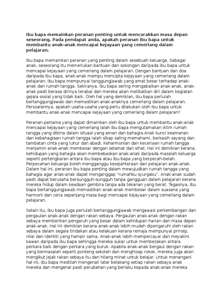 Karangan Peranan Ibu Bapa Dalam Menentukan Kejayaan Anak