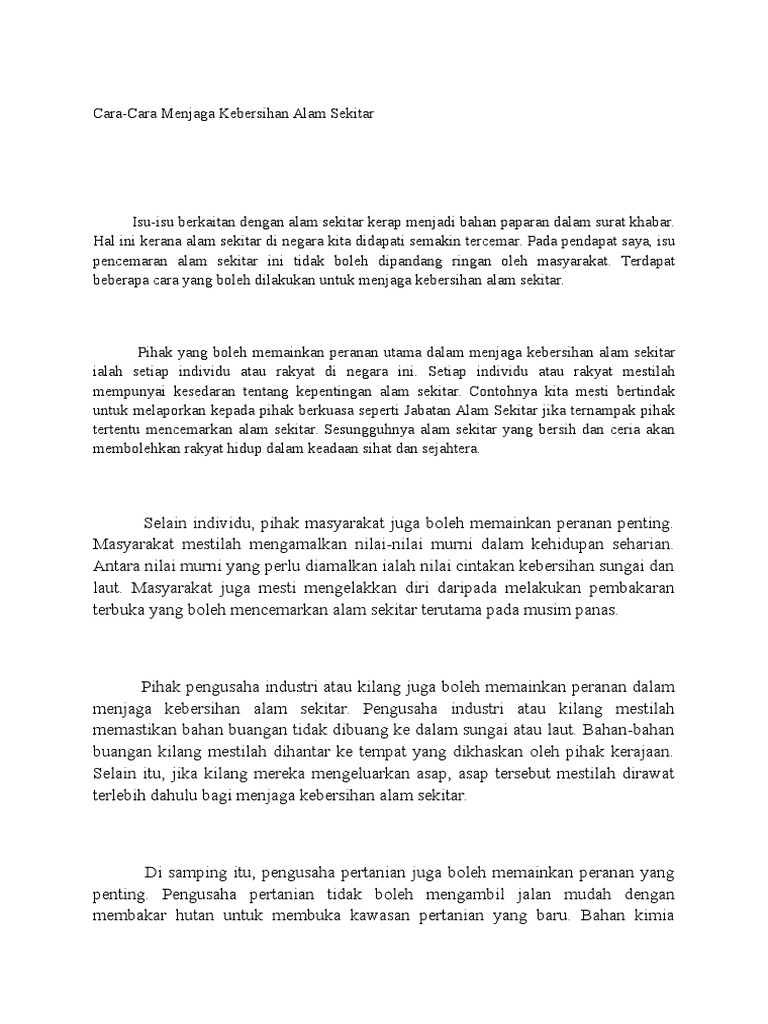 Cara Cara Menjaga Kebersihan Alam Sekitar Docx