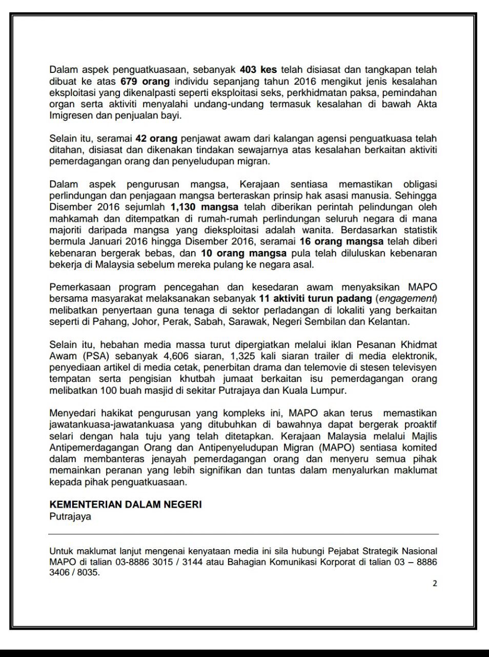 Kdn On Twitter Kenyataan Media Yab Tpm Mengenai Komitmen Negara Dalam Menangani Pemerdagangan Orang Dan Penyeludupan Migran Di Malaysia Https T Co Ut1qpgtqks