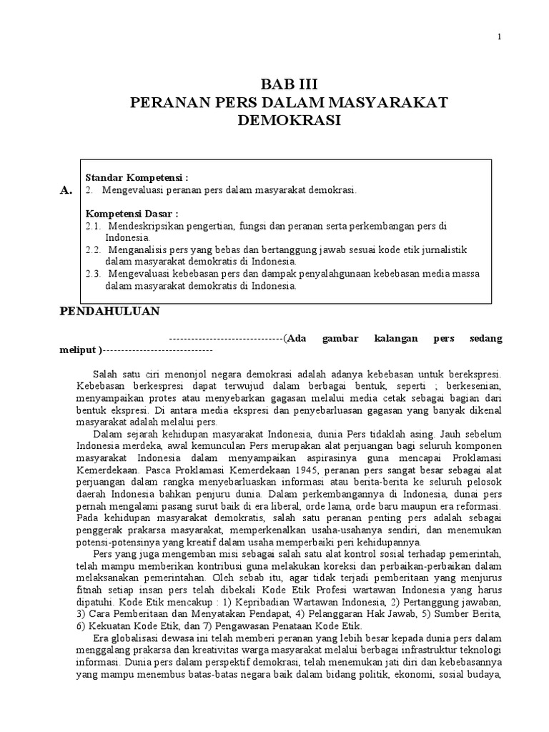 Kelas Xii Kd Iii Pers Peranan Pers Dalam Masyarakat Demokrasi