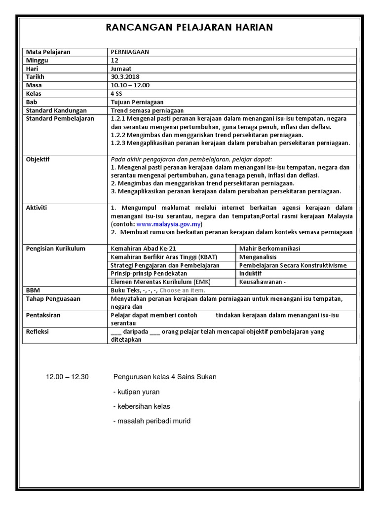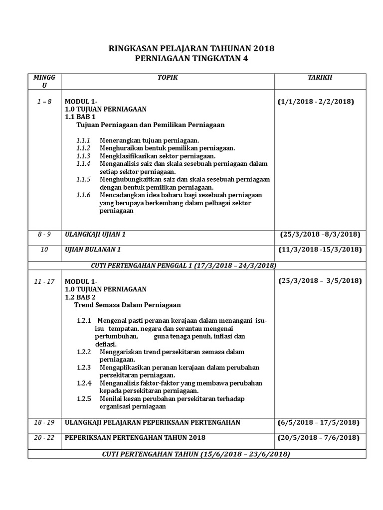 Rancangan Pelajaran Tahunan Perniagaan Tingkatan 4