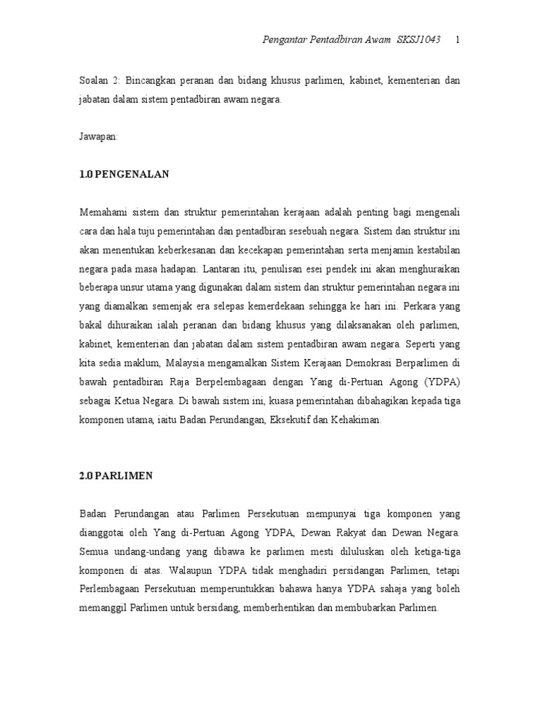 Bincangkan Peranan Dan Bidang Khusus Parlimen Kementerian Dan Jabatan Dalam Sistem Pentadbiran Awam Negara Oleh Zulkifli Ajoi