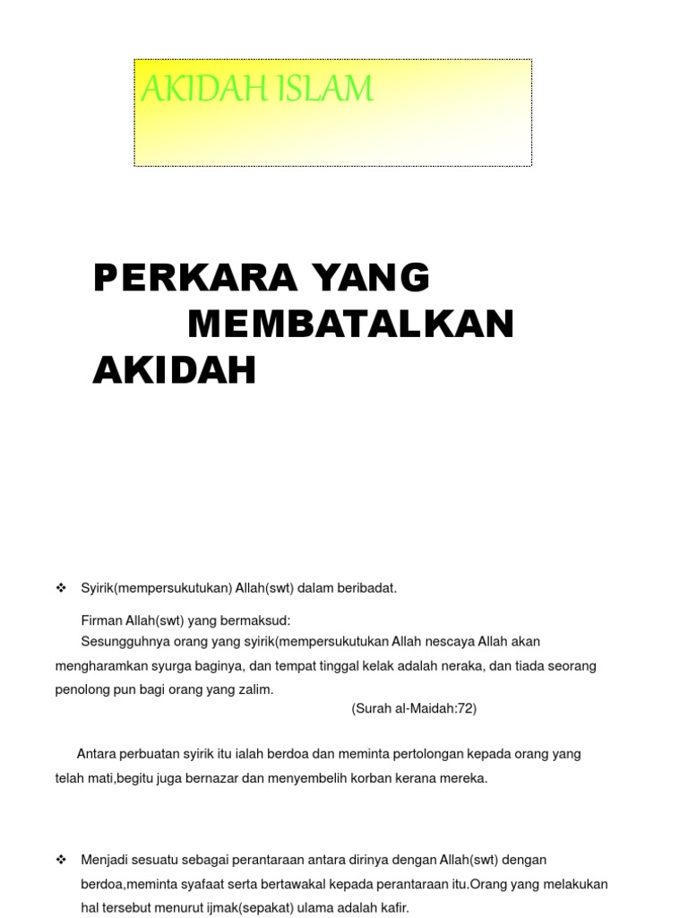 Perkara Yang Membatalkan Iman Authorstream