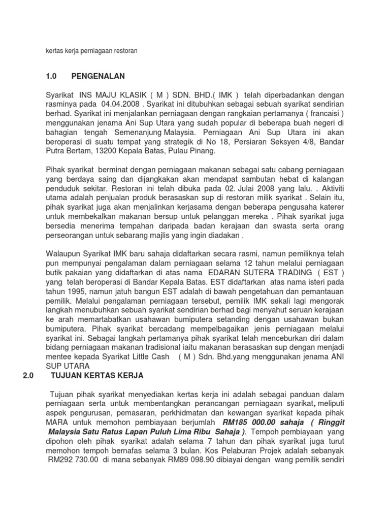 Kertas Kerja Perniagaan Restoran