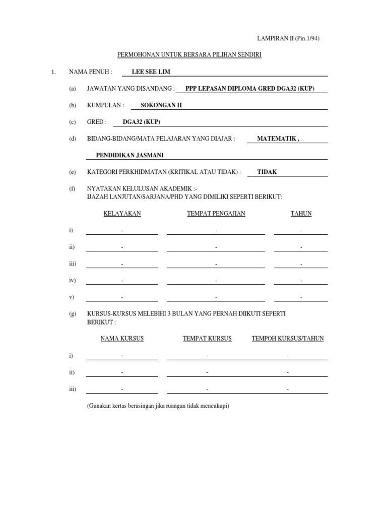 Contoh Surat Permohonan Bersara Pilihan Sendiri Download Kumpulan Gambar