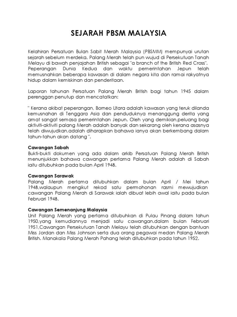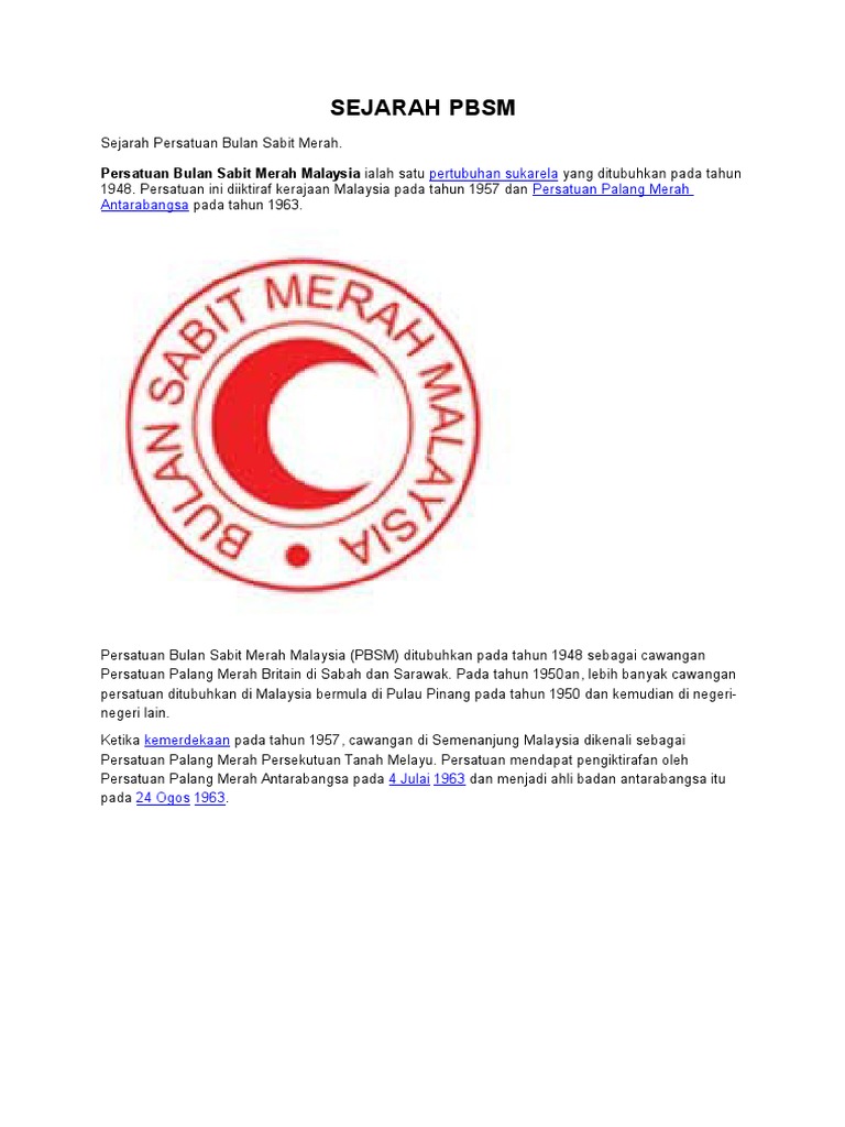 Persatuan Bulan Sabit Merah Malaysia Sejarah Pbsm