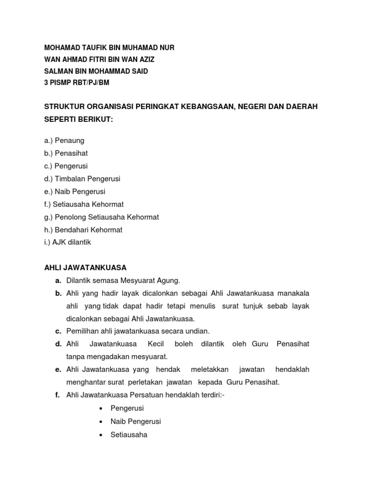 Persatuan Contoh Surat Perletakan Jawatan Ahli Jawatankuasa