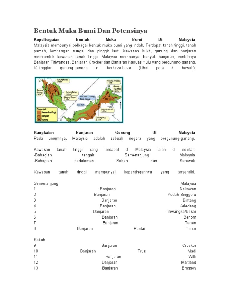 Nota Geografi Kepelbagaian Bentuk Muka Bumi Di Malaysia