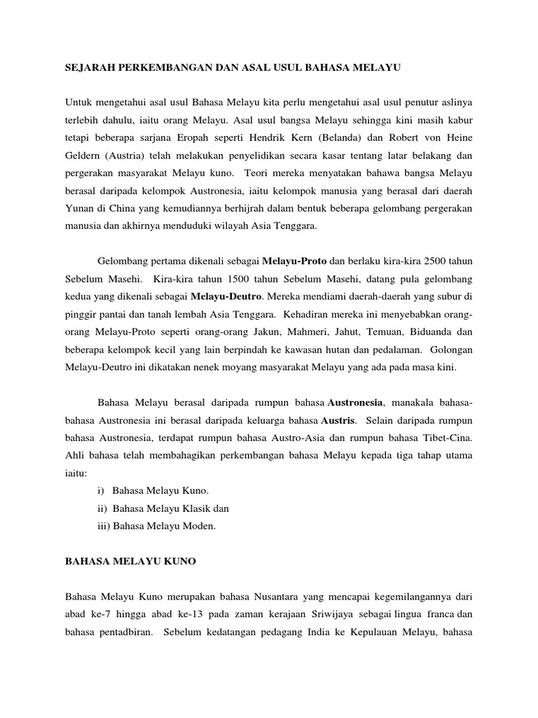 Aku Buku Skuter Asal Usul Bahasa Melayu Nota Utk Ppismp