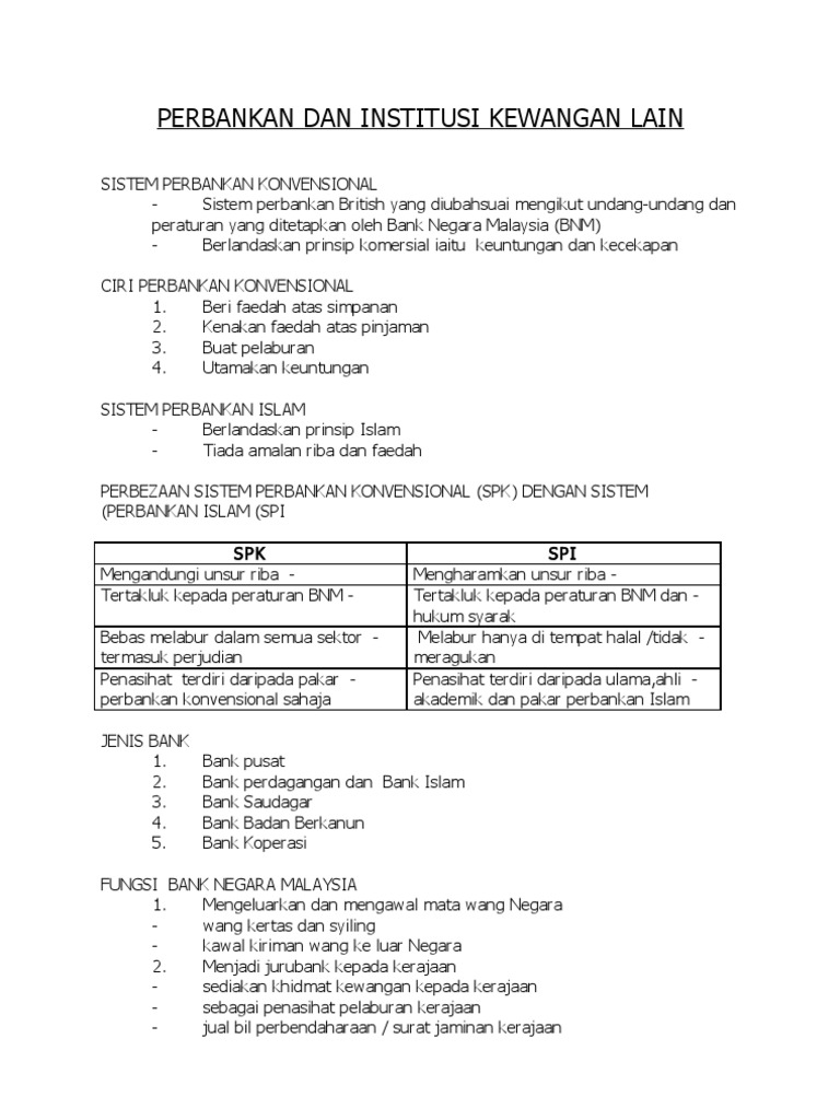 Perbezaan Sistem Perbankan Konvensional Spk Dengan Sistem Perbankan Islam Spi Spk Spi