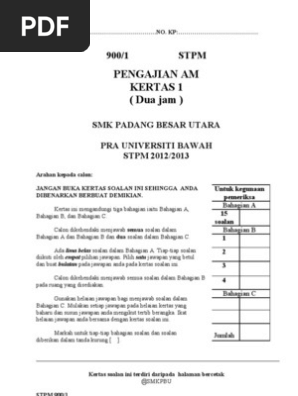 Soalan Peperiksaan Pengajian Am Penggal 1 2012