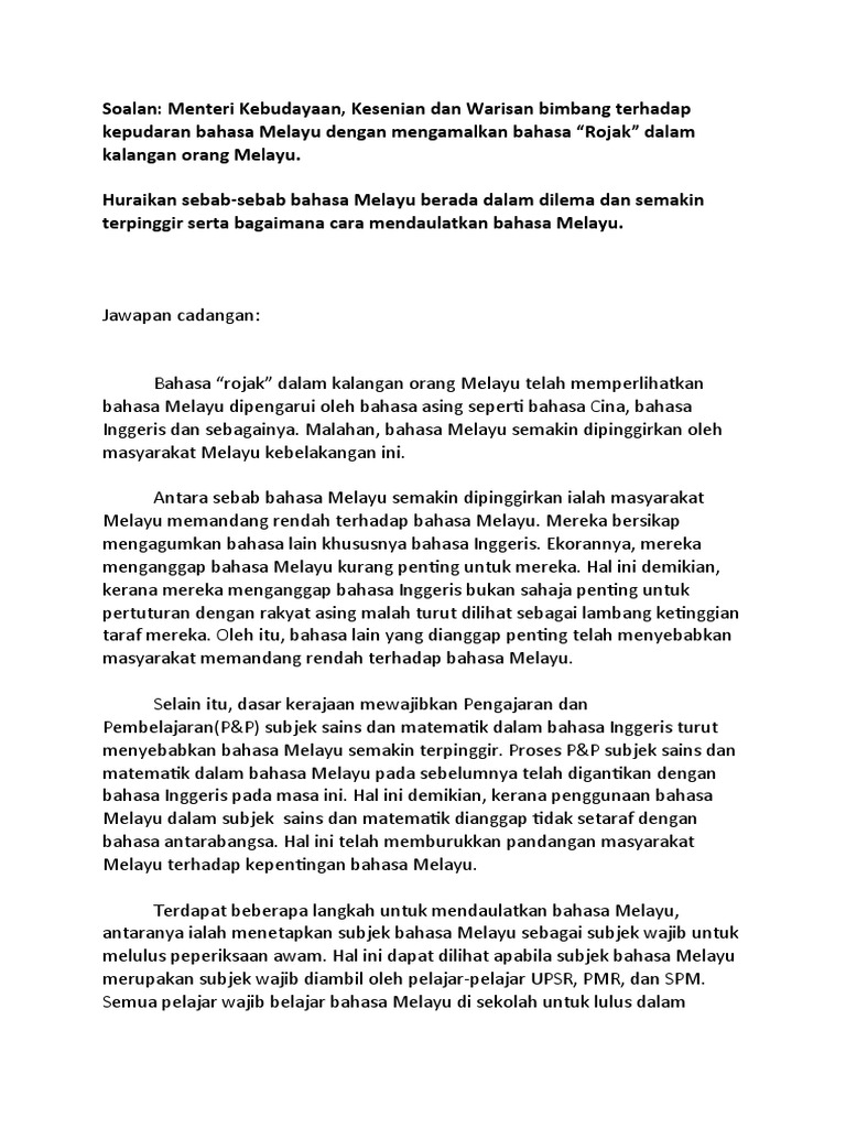 Sebab Sebab Bahasa Melayu Berada Dalam Dilema Dan Semakin Terpinggir Serta Cara Untuk Mendaulatkan Bahasa Melayu Docx Document
