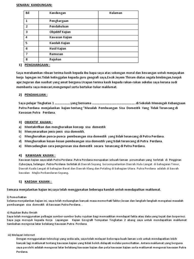 Contoh Kerja Lapangan Docx Contoh Kerja Lapangan Tajuk Fenomena Pembuangan Sisa Domestik Di Sekitar Taman Sepakat Kepong Selangor Disediakan Oleh Nama Course Hero