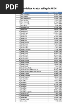 List Daftar Nama Nama Peserta Kanwil Aceh Cpns Depkumham Ri Tahun 2010