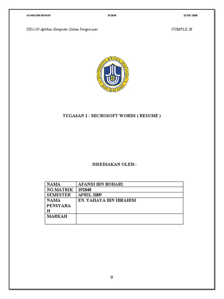 Tugasan 1 Microsoft Words Resume Tid1103 Aplikasi Komputer Dalam Pengurusan Uum Plk Jb