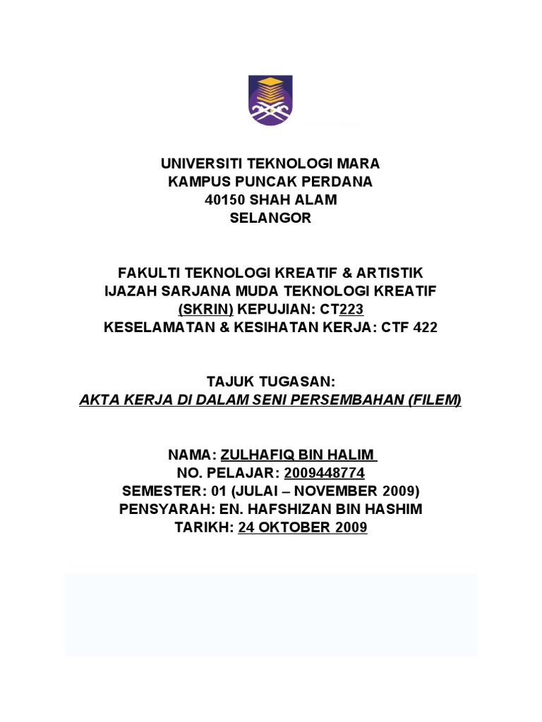 Health Safety Akta Kerja Di Dalan Seni Persembahan Filem
