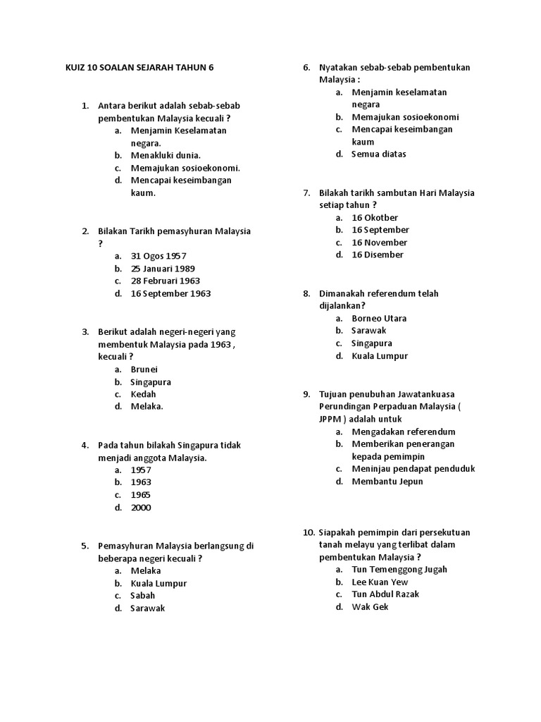Sebab Sebab Pembentukan Malaysia Sejarah Tahun 6