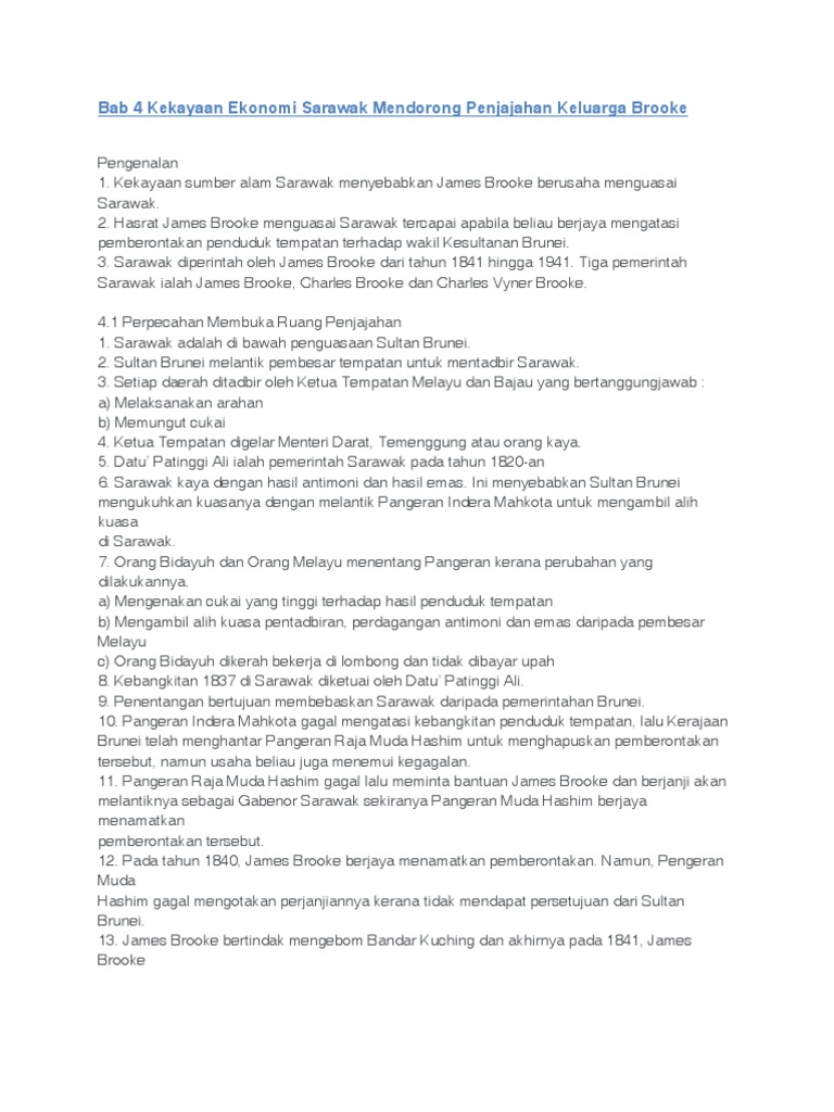 Nota Sejarah Bab 4 Kekayaan Sarawak Mendorong Penjajahan Keluarga Brooke