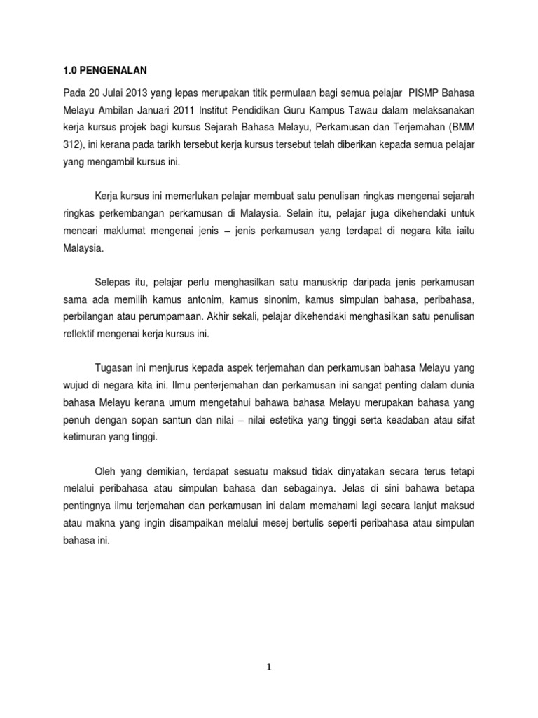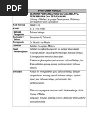 Doc Bmm 3112 Sejarah Bahasa Melayu Perkamusan Dan Terjemahan Hashim Abdullah Academia Edu