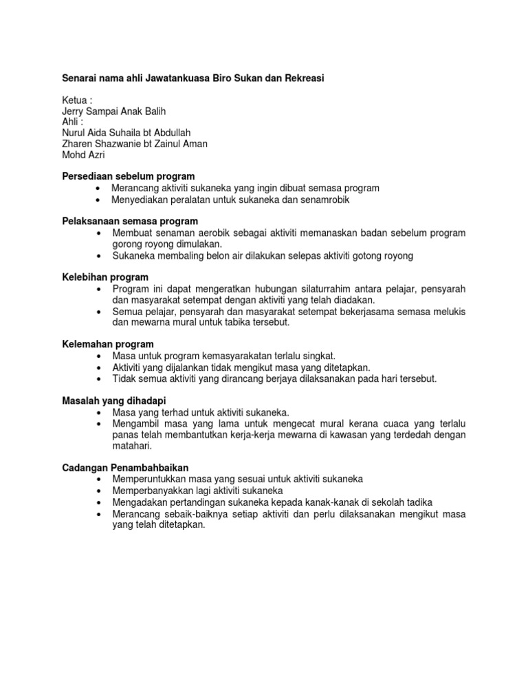 Contoh Laporan Biro Sukan Docx Docx Document