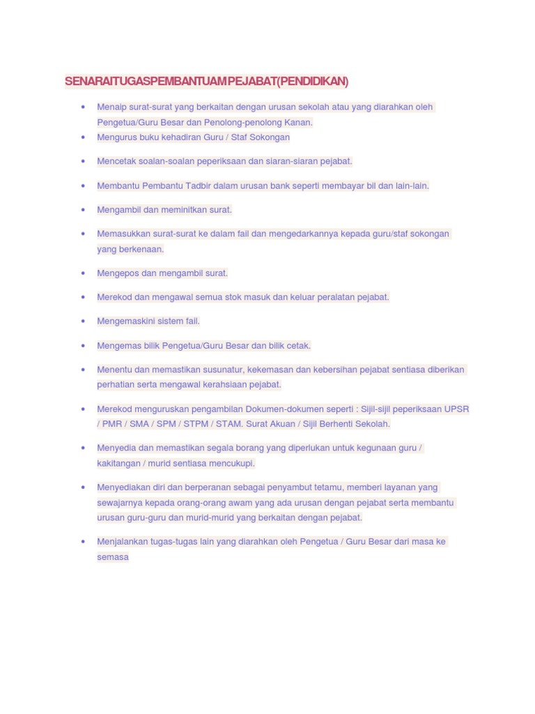 Senarai Tugas Pembantu Tadbir