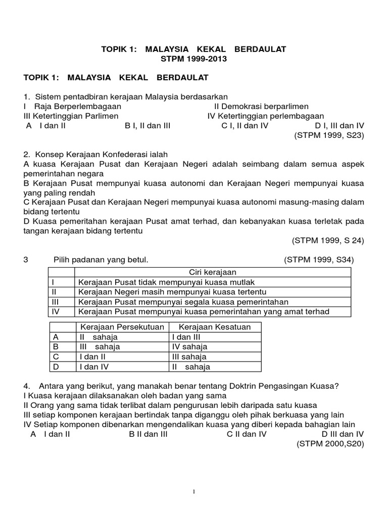Peperiksaan Sijil Tinggi Persekolahan Malaysia Nbsp Sijil Tinggi Persekolahan Malaysia Stpm Pengajian Am Malaysia Yang Meliputi Tajuk Tajuk Seperti Malaysia Kekal Berdaulat Pdf Document