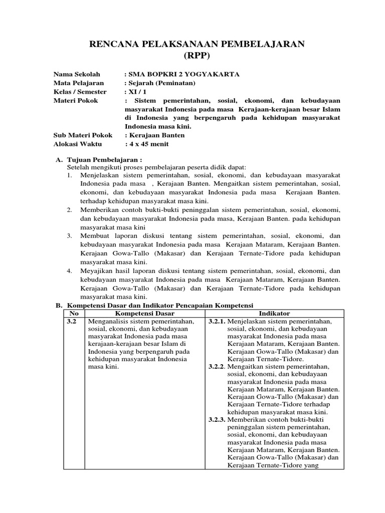 Rpp Kerajaan Islam Mataram Dan Banten Docx