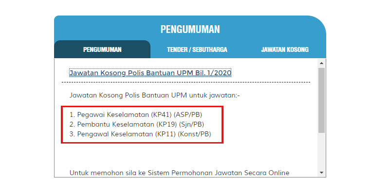 Jawatan Kosong Polis Bantuan Di Universiti Putra Malaysia Upm Jobcari Com Jawatan Kosong Terkini