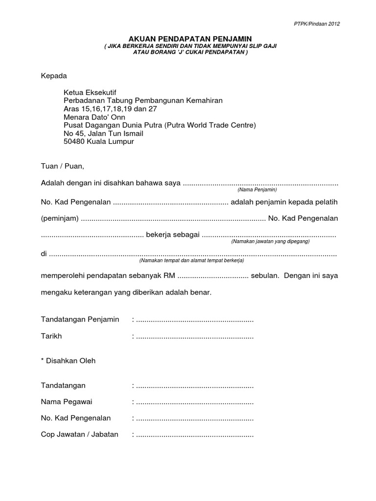 Borang Pengesahan Pendapatan Bagi Yang Tiada Slip Gaji