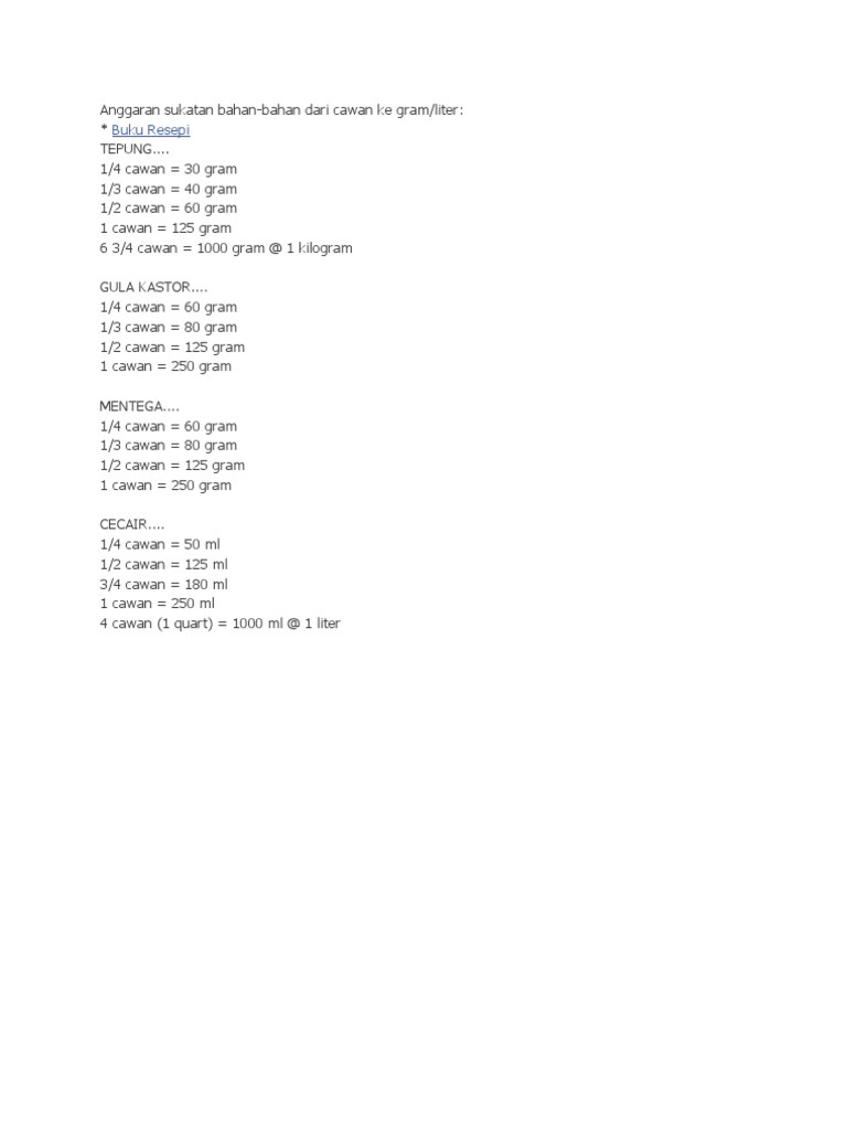 Sukatan Cawan Ke Gram Kredit Menu Buat Orang Tersayang Facebook